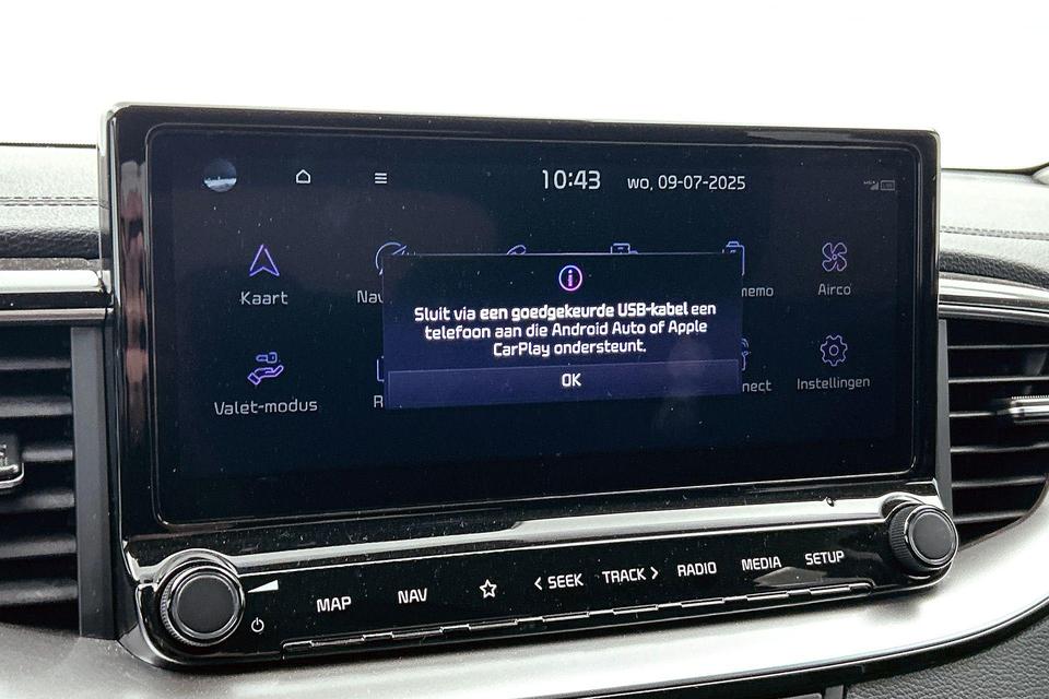 Het personaliseren van uw cockpitinterface is mogelijk met het digitale dashboard in deze auto. 'Boem is ho'? Niet met deze achteruitrijcamera. U ziet achter net zo goed als voor en krijgt een duidelijk geluidssignaal! Adaptive cruise control is een comfortabele en veilige optie. Het systeem reguleert de snelheid en houdt automatisch afstand tot uw voorligger. De aanwezige file assistent meet de afstand tot uw voorligger en zorgt voor een veilige afstand. Staat het voor u opeens stil? Dan zorgt het systeem dat de auto ook stopt. Zoals u van zo'n jonge auto mag verwachten, zijn hier ook de geavanceerde remote services aanwezig. Simpelweg met een app op uw smartphone controleert u op afstand de status van de auto en bedient u diverse functies. Deze Kia is voorzien van dashboard met spraakbediening, full map navigatiesysteem, automatische airconditioning, draadloos opladen, DAB ontvangst en regensensor.